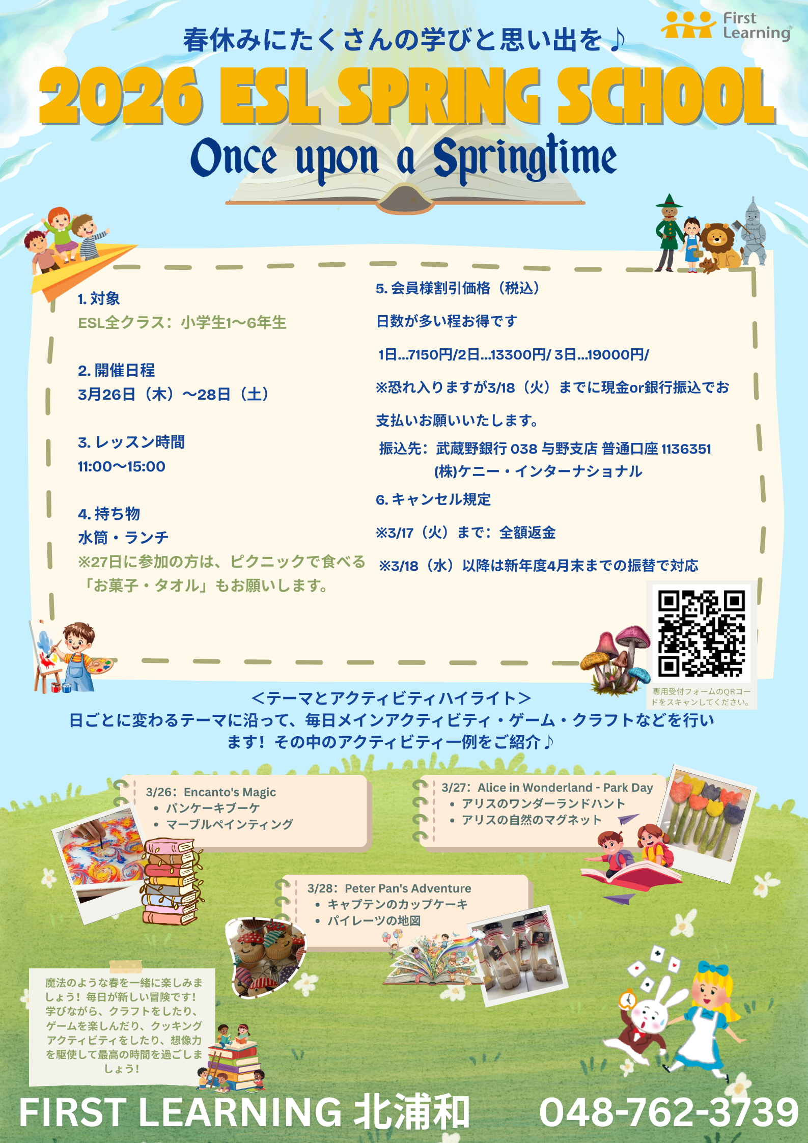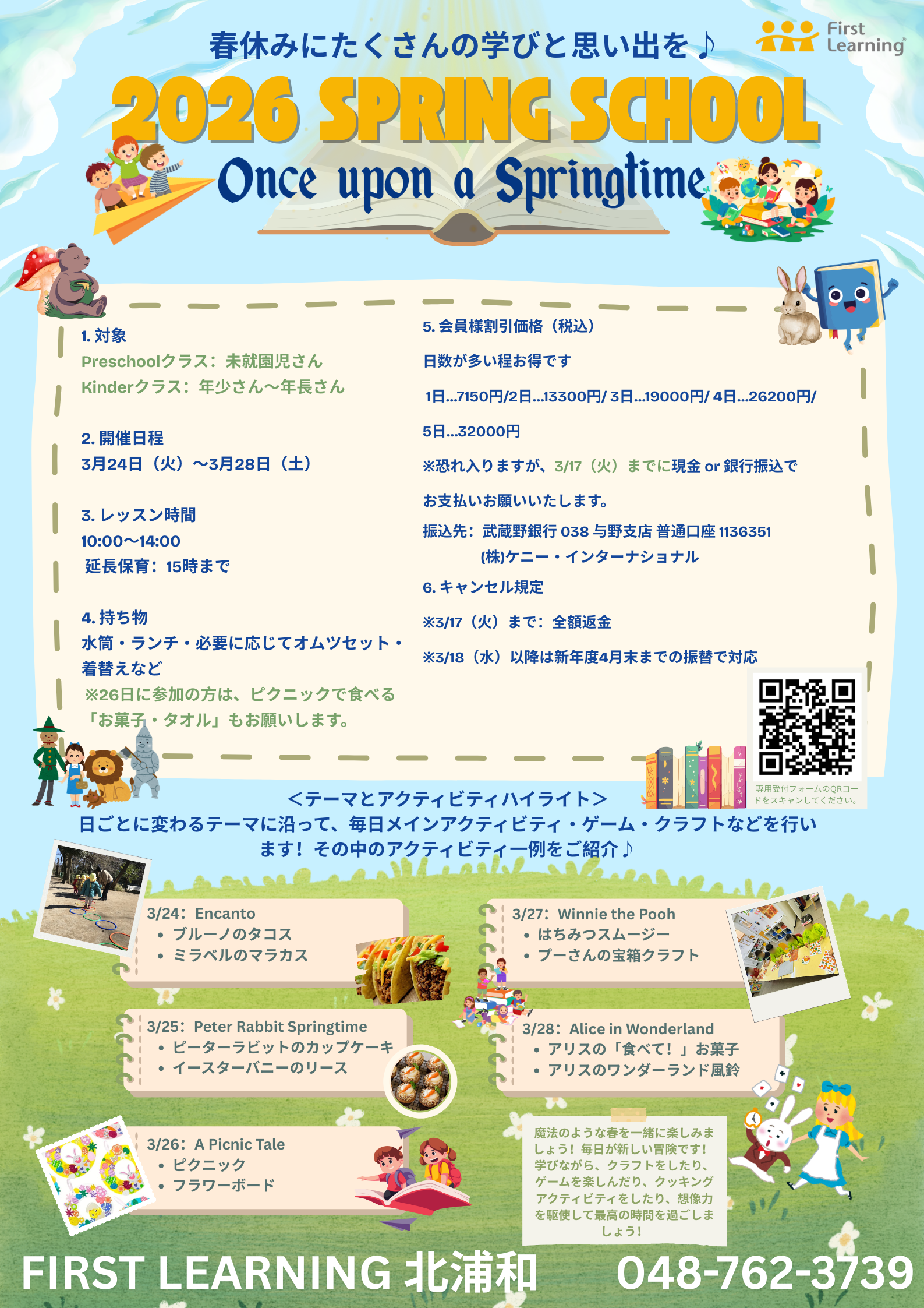 - 対象クラス:Kinder 1 Class (年少クラス) / 授業時間 10:00~14:00 (4時間)